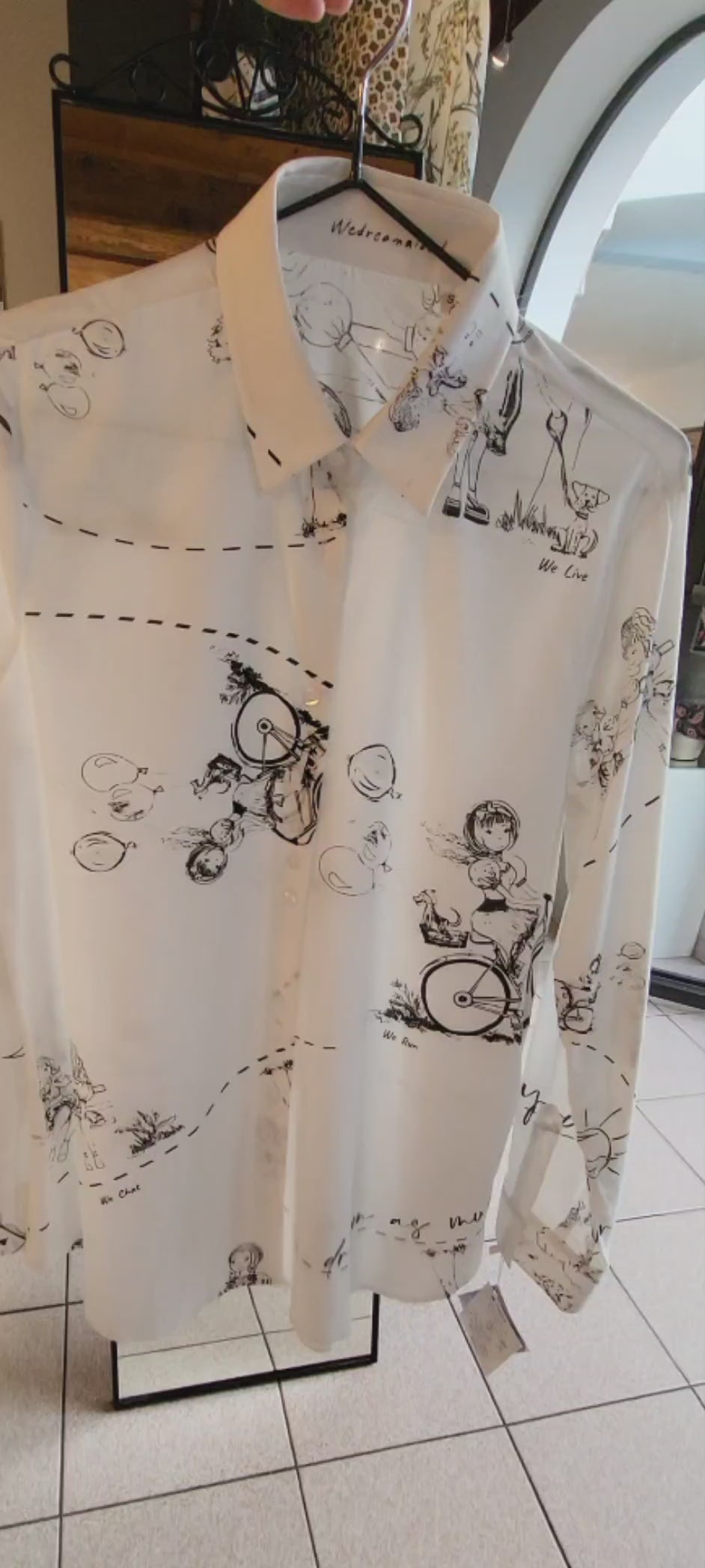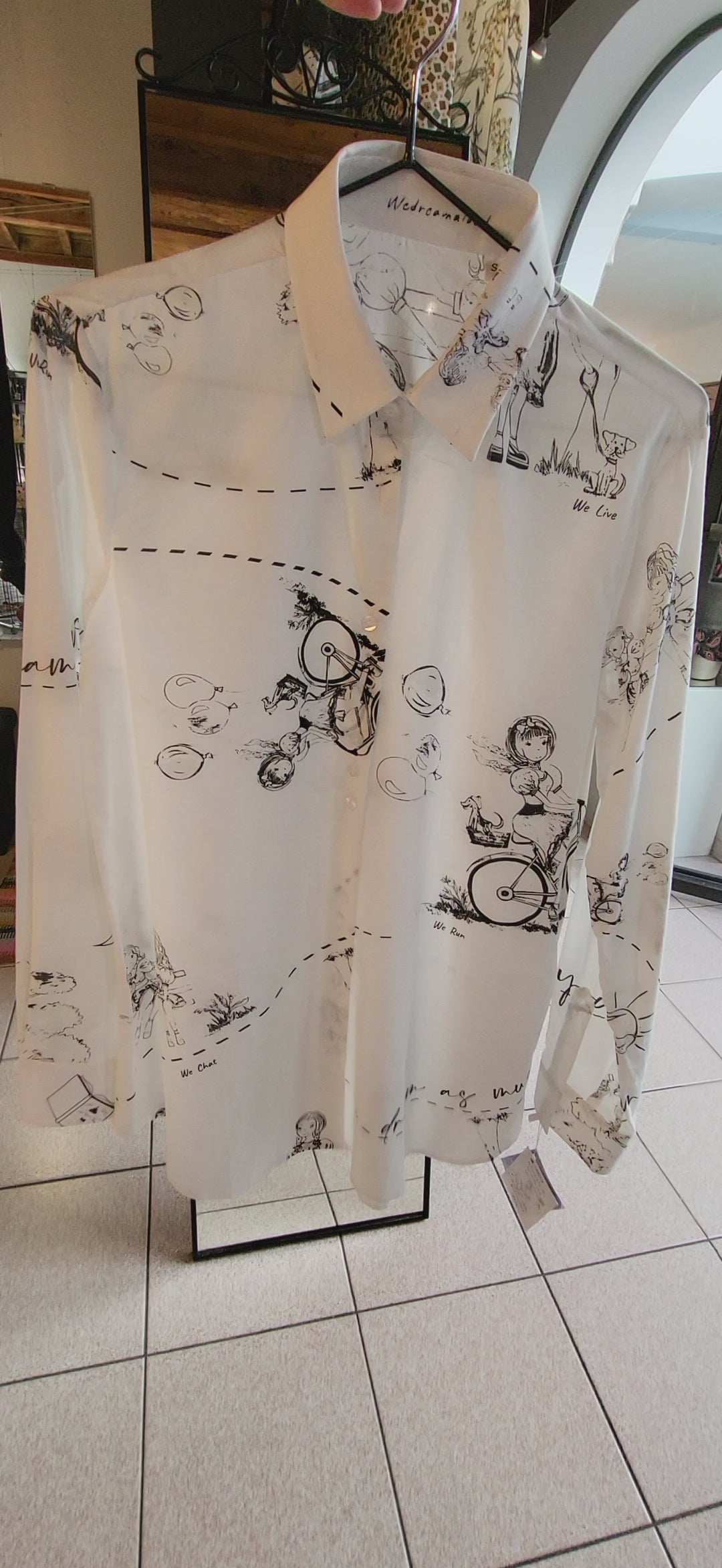 Taglio maschile comodo , con 3 bottoni all'altezza del seno per una maggiore vestibilità.